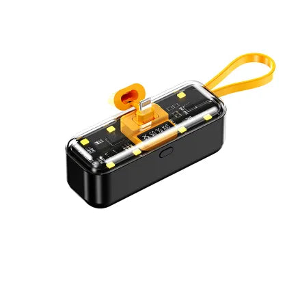 Этот внешний аккумулятор емкостью 5000 мАч оснащен литиевой батареей 21700, встроенными кабелями и фонариком. С входом/выходом 5 В/2 А, он компактный и прочный, изготовлен из материала ABS+PC, доступен в белом и черном цветах.