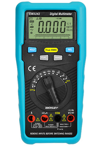 Мультиметры EM3240 — это 3 3/4-разрядные цифровые мультиметры с автоматическим диапазоном и истинным среднеквадратичным значением, предназначенные для измерения постоянного и переменного напряжения, постоянного и переменного тока, сопротивления, целостности цепи, диодов, температуры (только EM3245 и EM3247), емкости и частоты. Они имеют функцию удержания данных, относительного измерения, индикации низкого заряда батареи, индикации выхода за пределы диапазона, автоматического отключения питания и т. д. Кроме того,