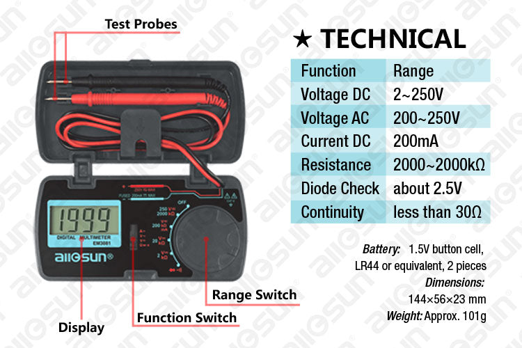Этот измеритель представляет собой компактный 3 1/2-разрядный цифровой мультиметр с автоматическим выбором диапазона для