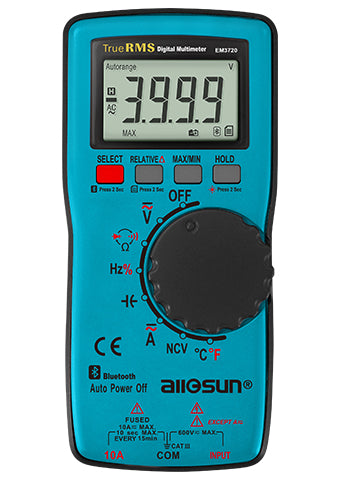 EM3720 можно использовать для измерения постоянного и переменного напряжения, постоянного и переменного тока, сопротивления, проверки диодов, целостности цепи, емкости, частоты, рабочего цикла и температуры.