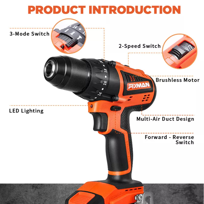 Аккумуляторная ударная дрель 20 В бесщеточная предназначена для закручивания и выкручивания шурупов, также подходит для ударного сверления в кирпиче, бетоне и камне, а также для сверления в металле, дереве, пластике и подобных материалах.