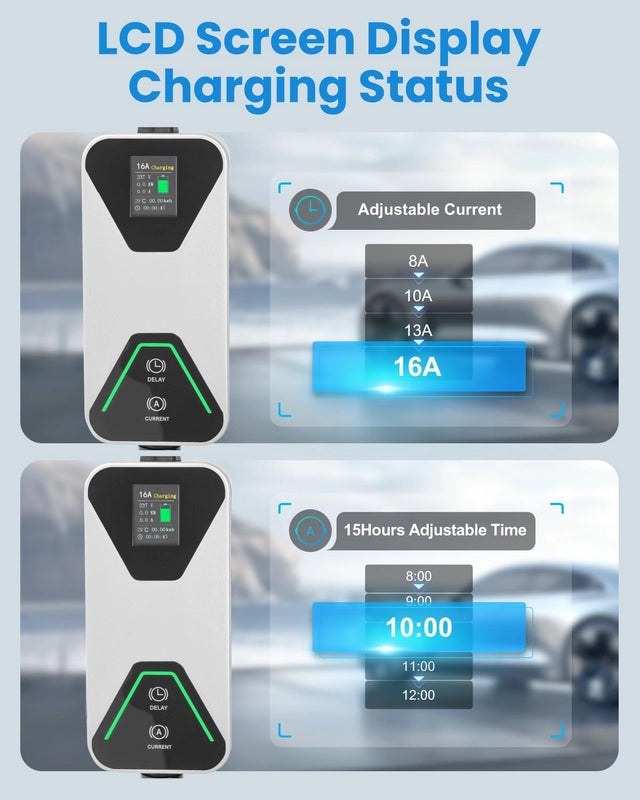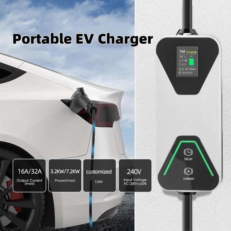 Портативное зарядное устройство для электромобиля Тип 1 Тип 2 Зарядное устройство для электромобиля 8A до 16A Регулируемая зарядная станция для электромобиля с вилкой Schuko
