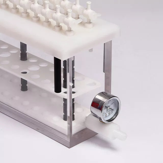 6. Внутренний штатив для пробирок прибора для твердофазной экстракции изготовлен из политетрафторэтилена, поэтому он обладает высокой коррозионной стойкостью.