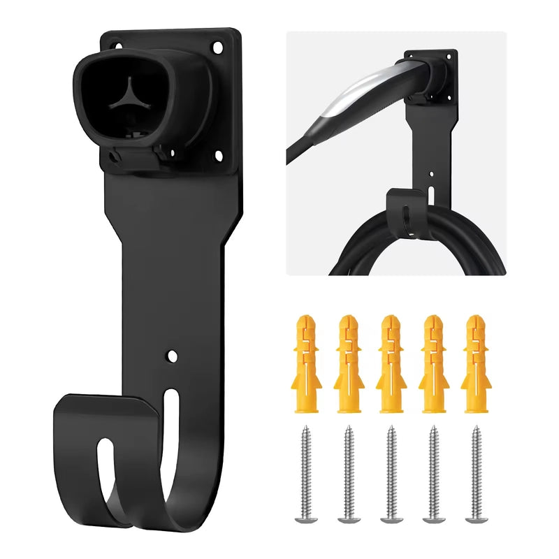 Держатель для зарядного устройства Tesla, док-станция для автомобильного зарядного устройства с насадкой-кобурой | Органайзер для зарядного кабеля | Настенное крепление | Винты | NACS | Черный | Аксессуары для держателя электромобиля и настенной коробки