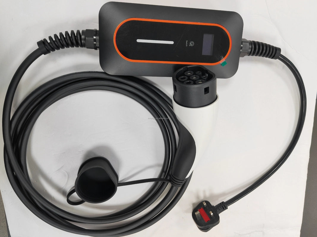 Портативное зарядное устройство для электромобиля Type 2 8A 10A 13A регулируемое с вилкой UK и ЖК-дисплеем